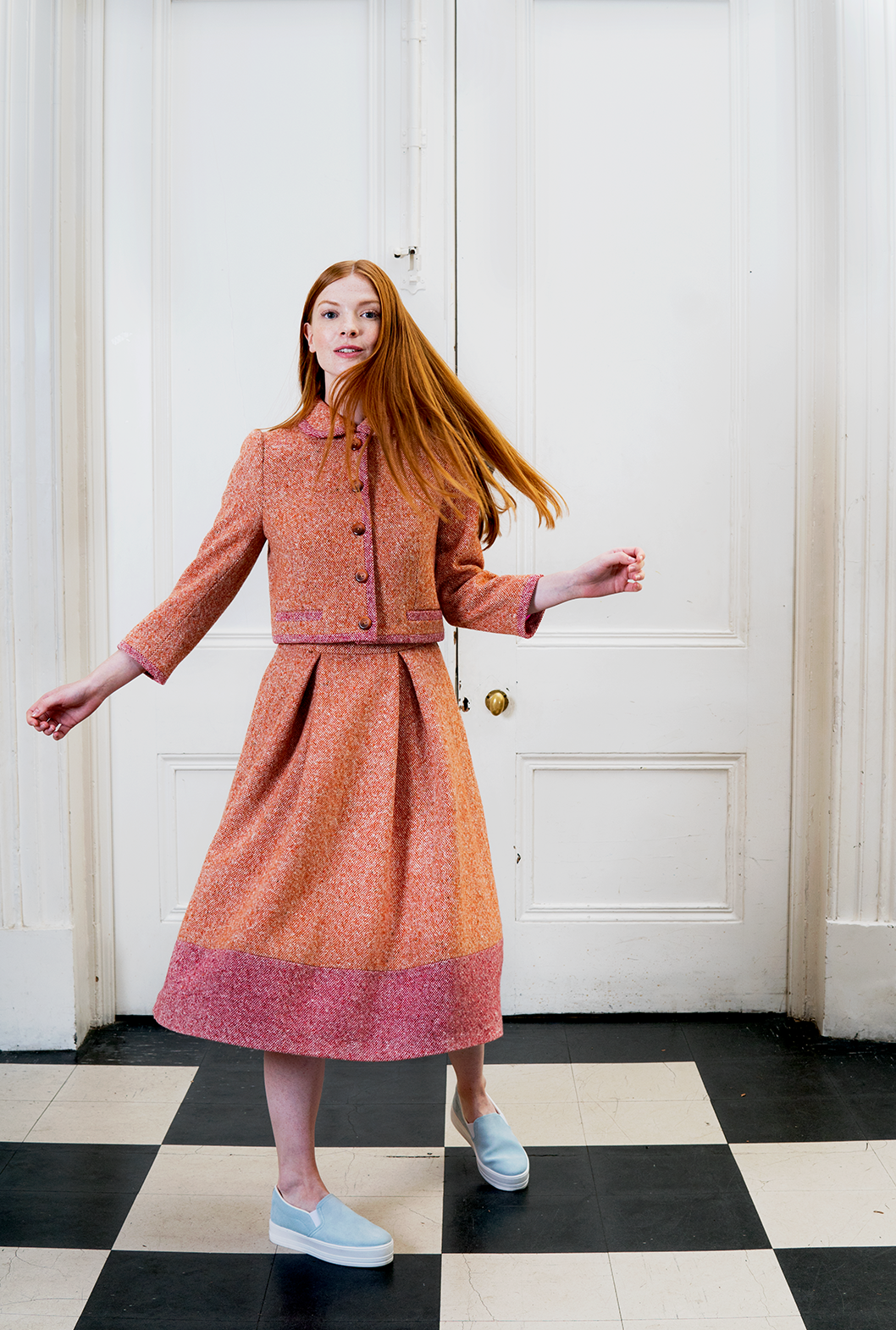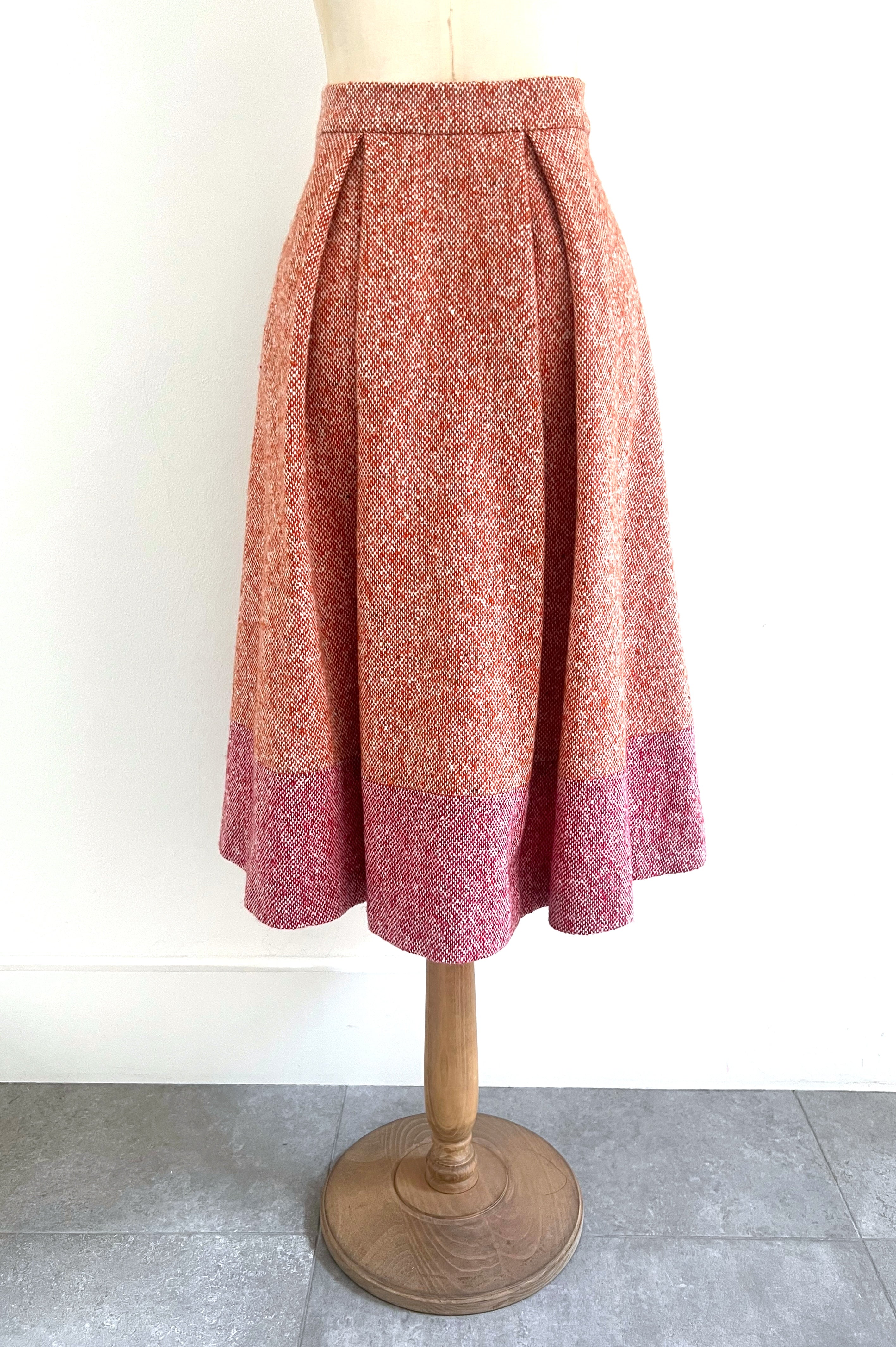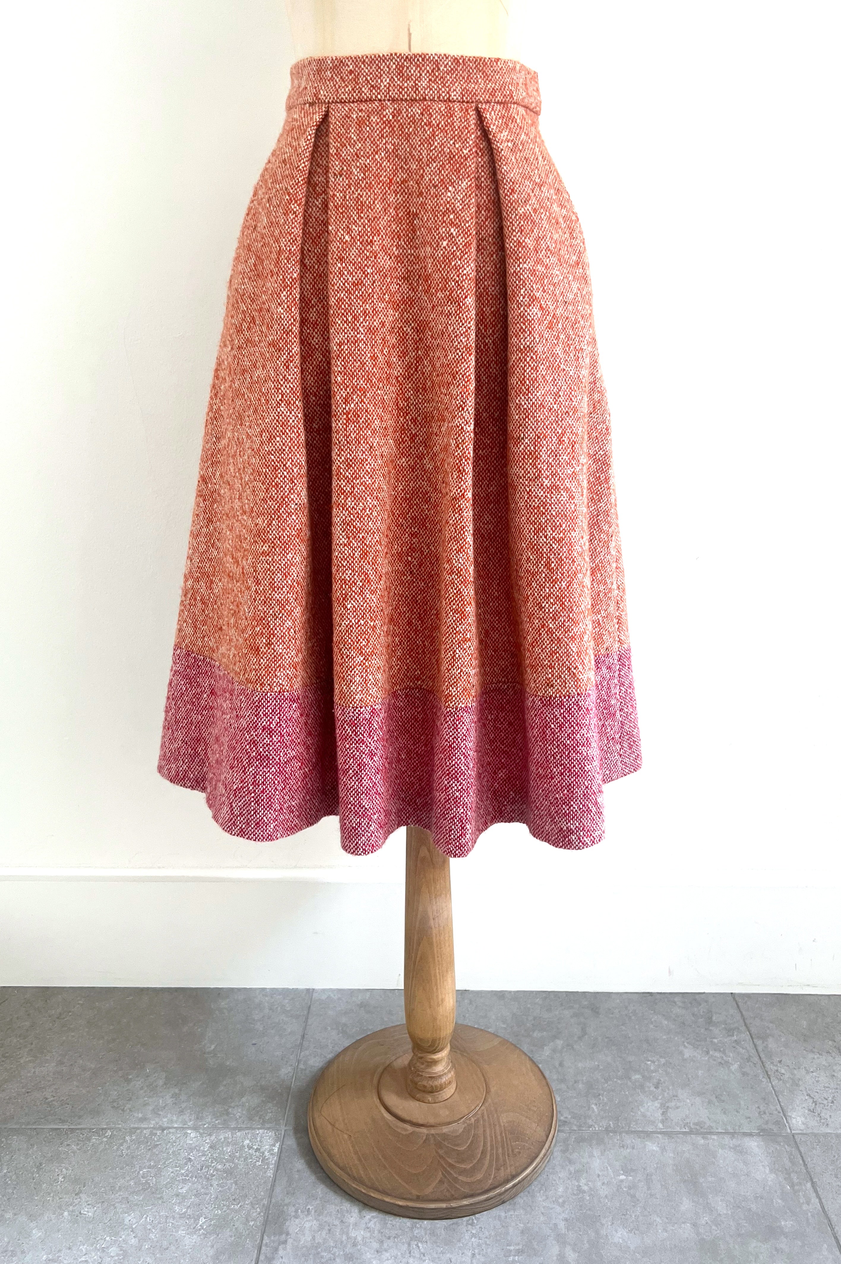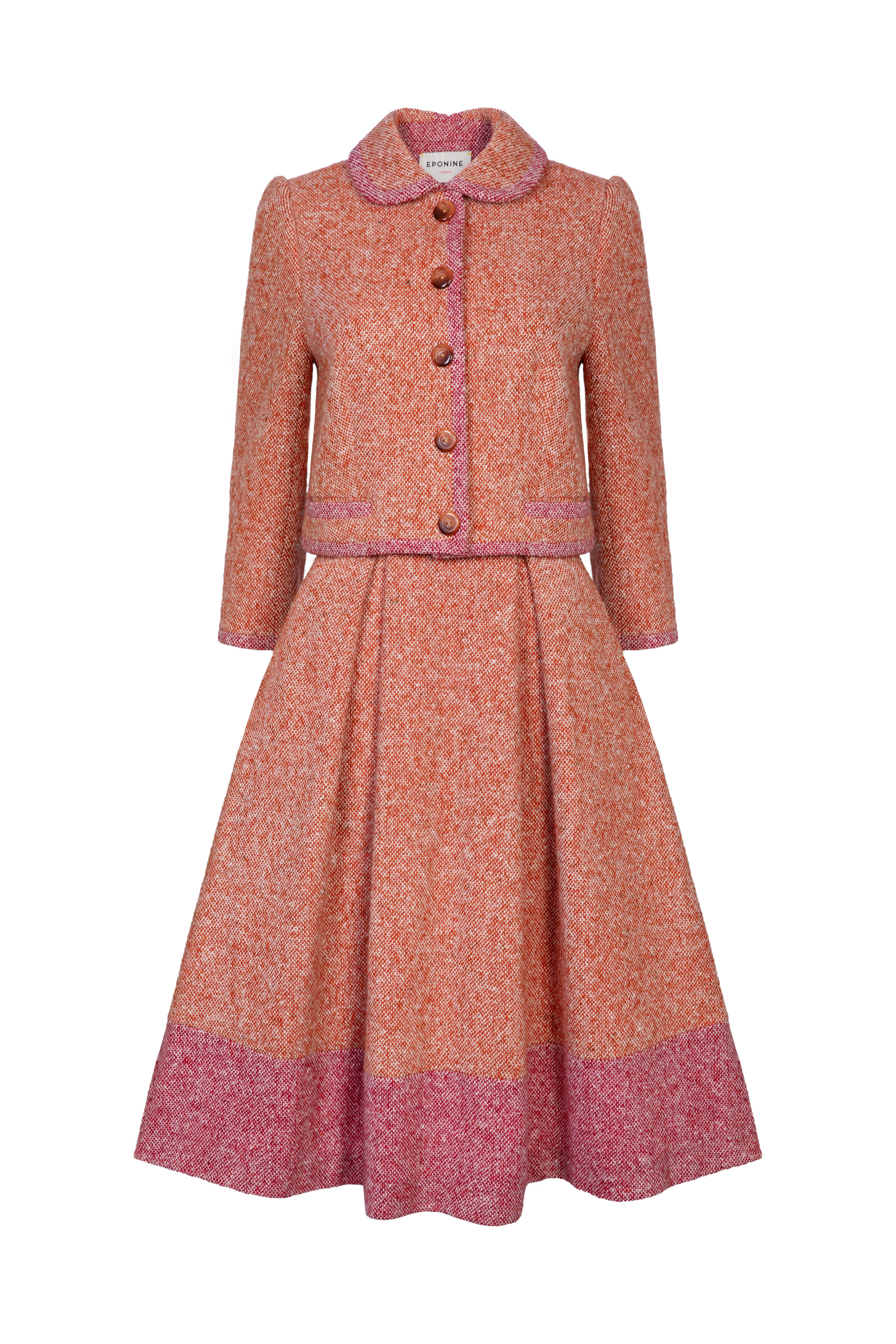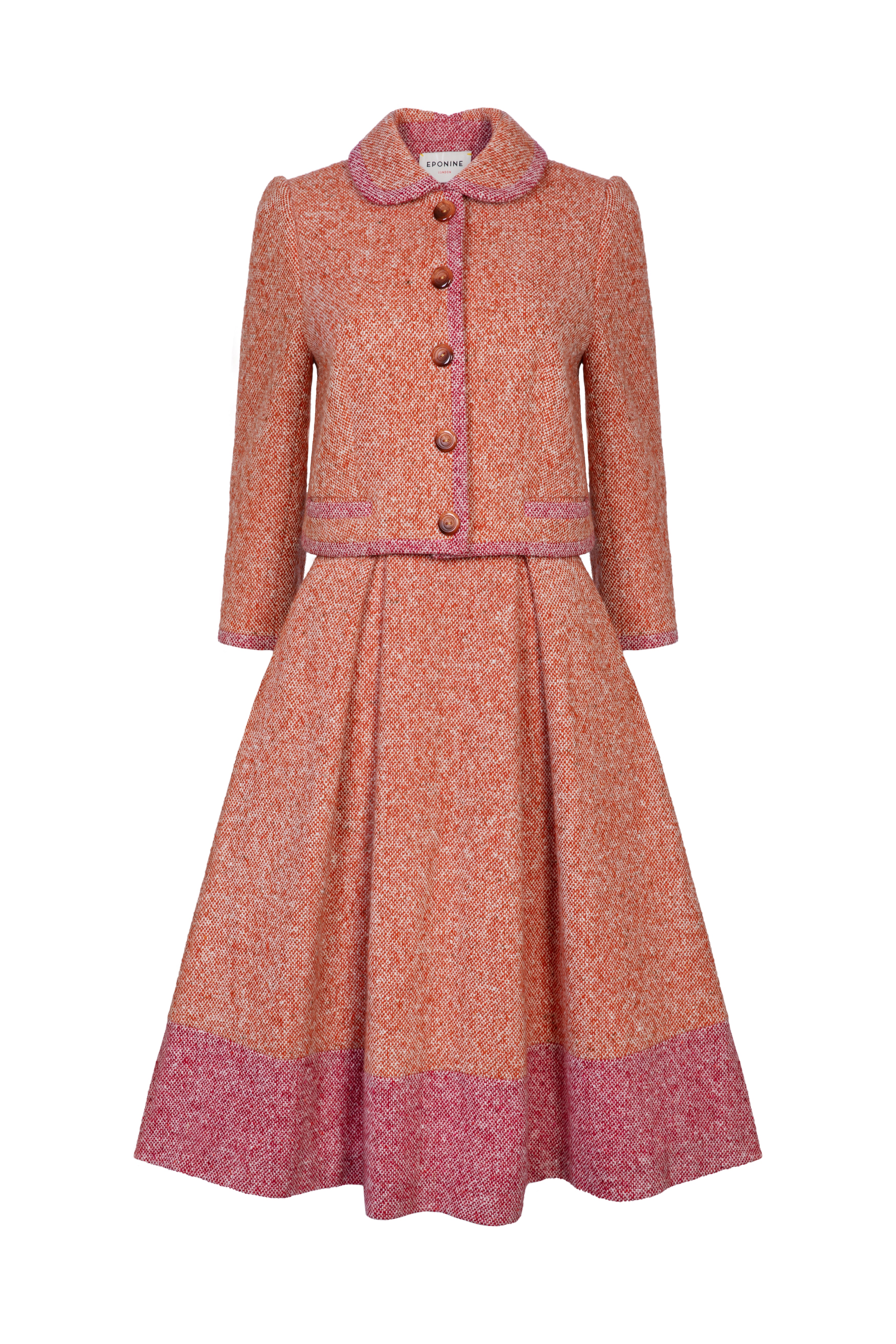 Wool tweed skirt featuring a high waist, box pleats and a hook and eye fastening. Norah can be paired with the matching Flavia jacket. Lined in silk satin.