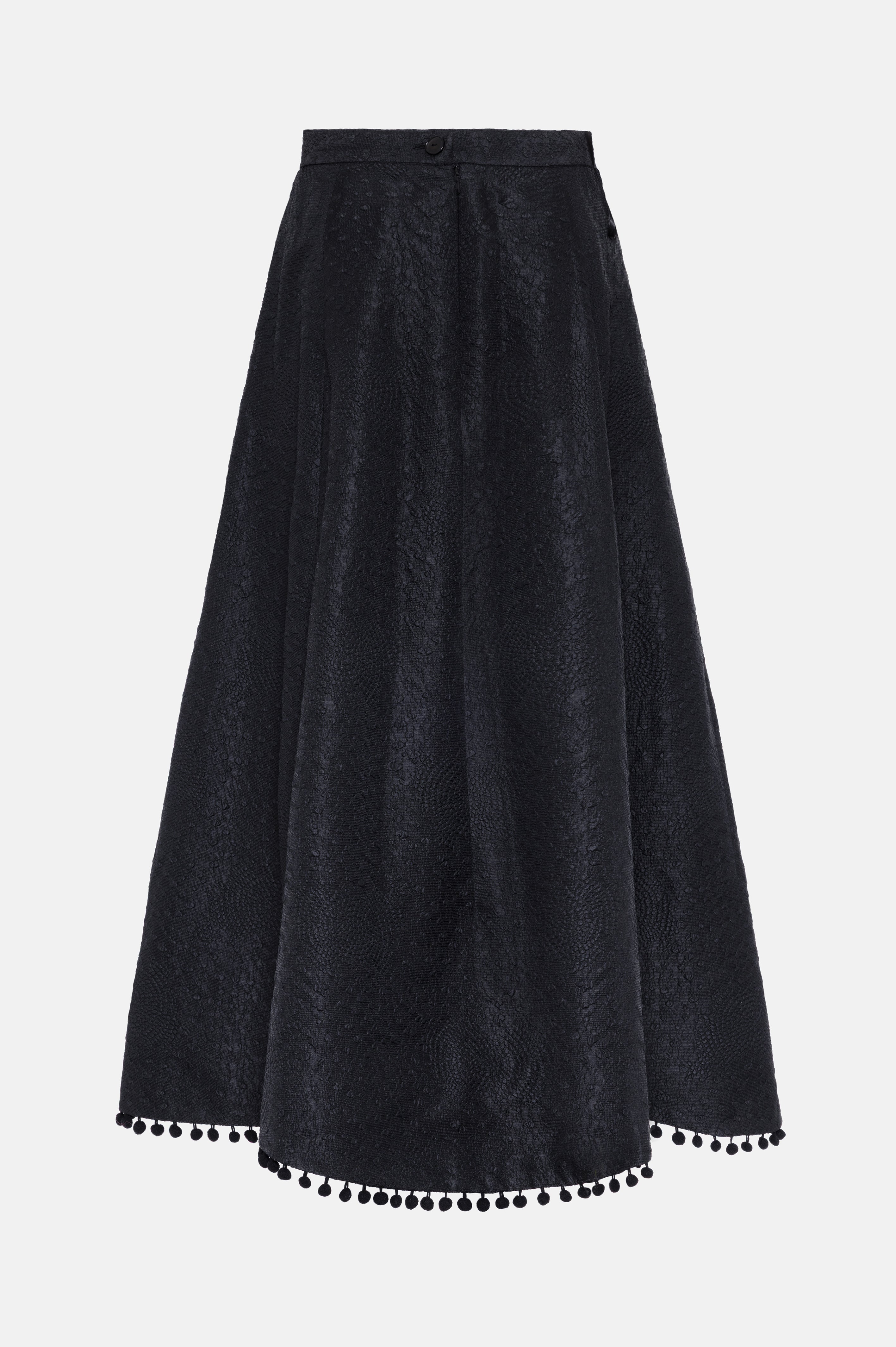 Crafted from silk so light it seems to move on its own, the Blackbird skirt is at once softly sculptural and ethereal. Quietly luxurious, it embodies understated glamour – finished with a witty pompom trim. For an exquisite monochrome look, pair with the Duck jacket.