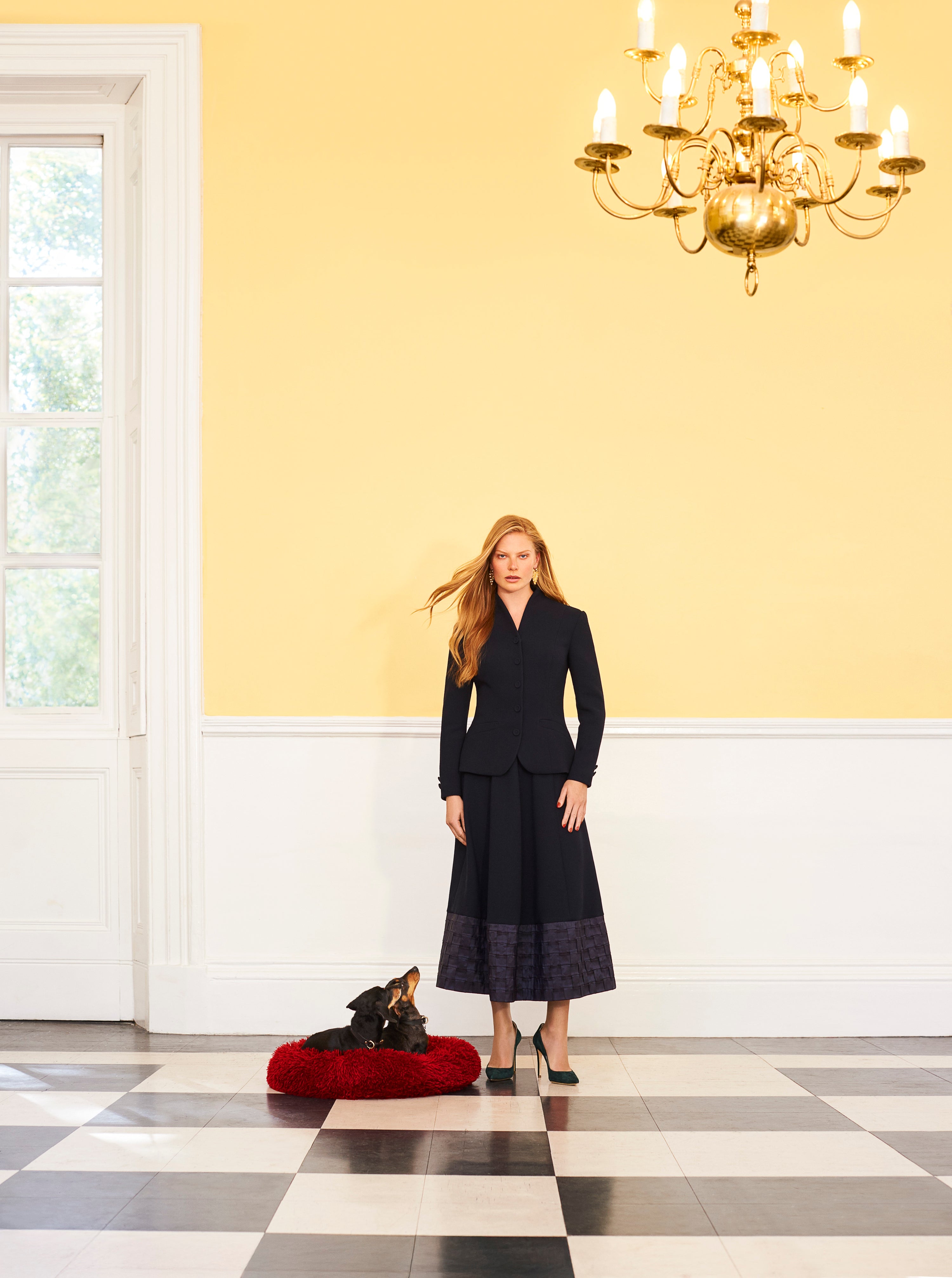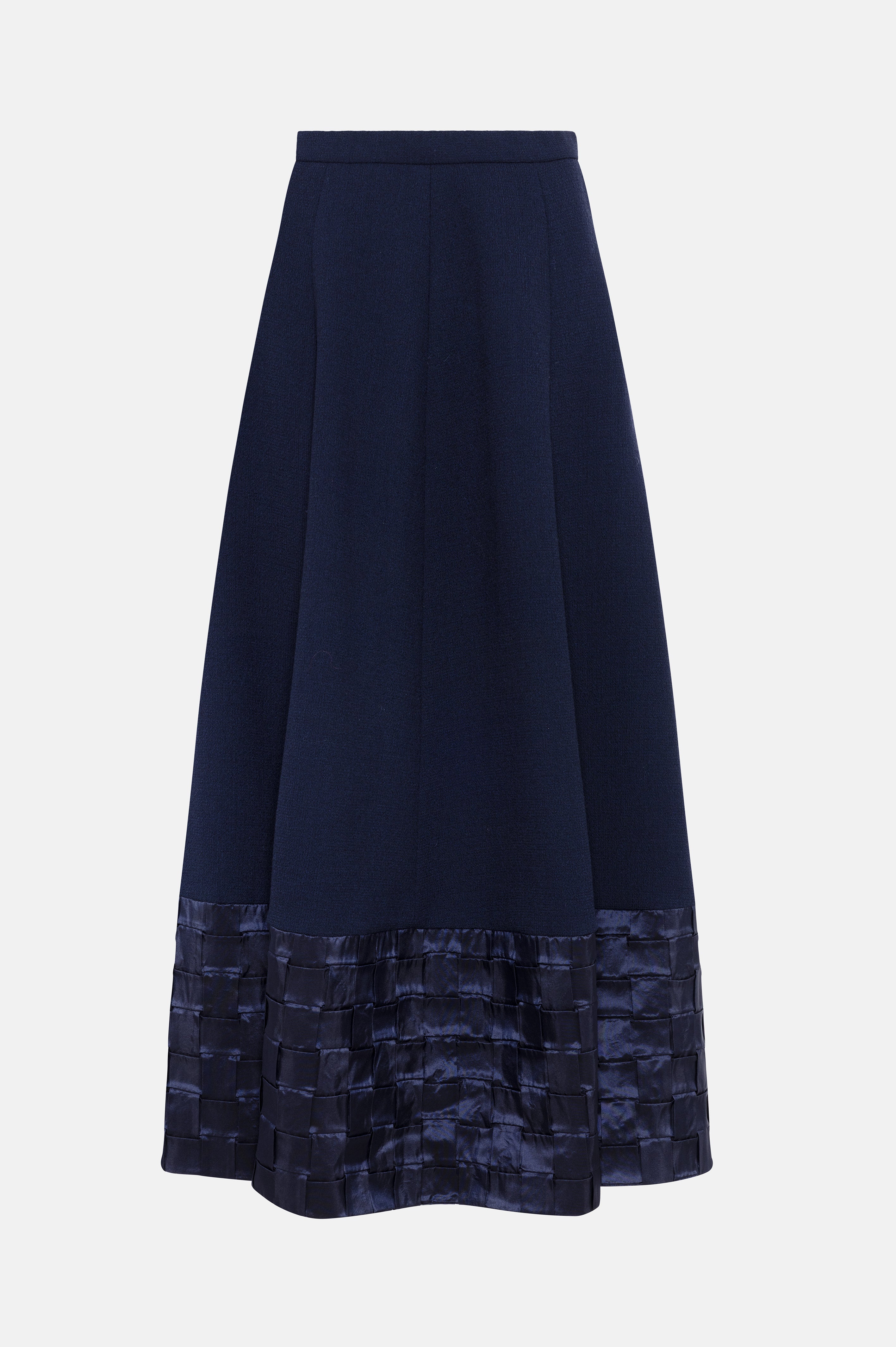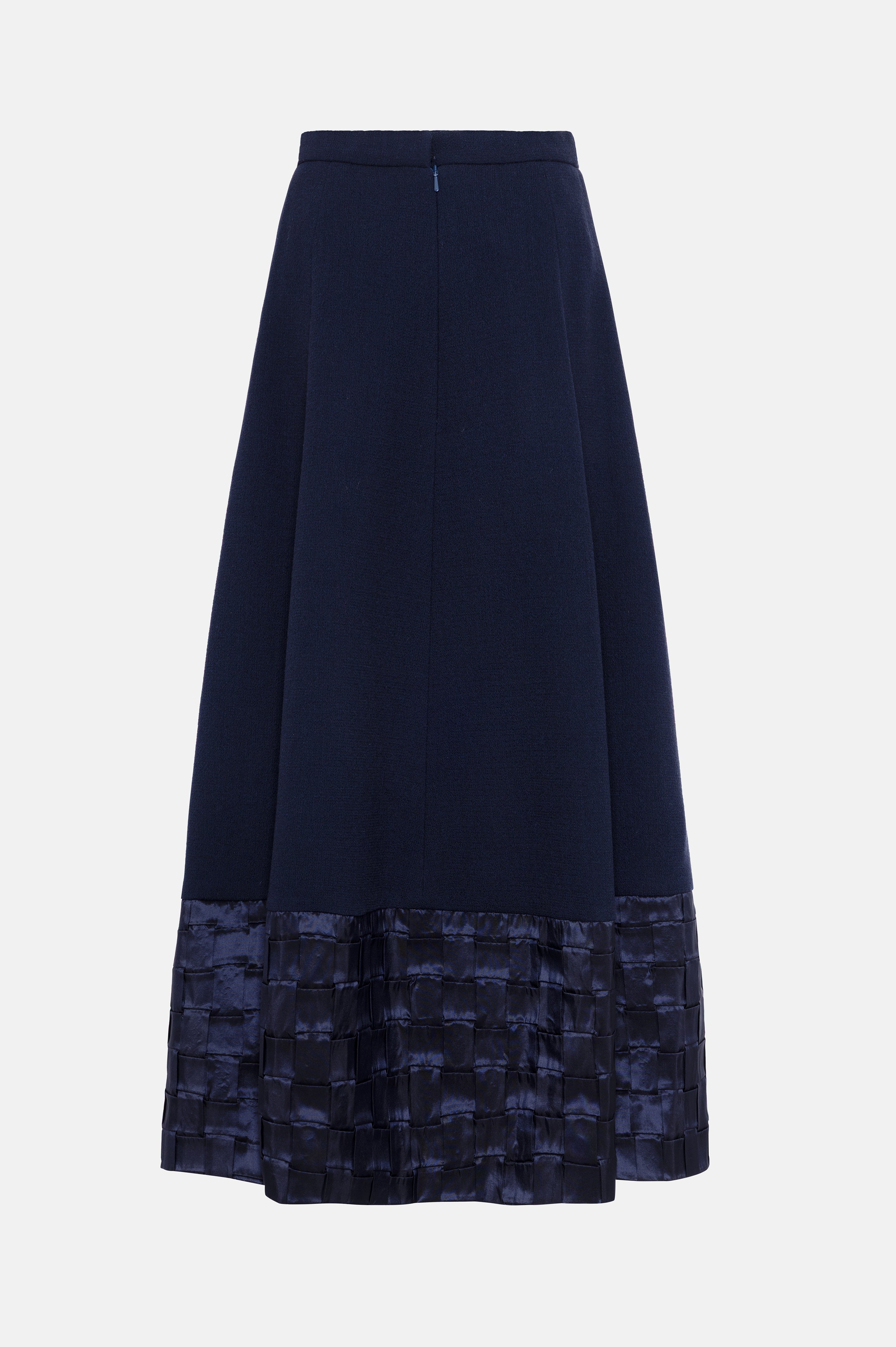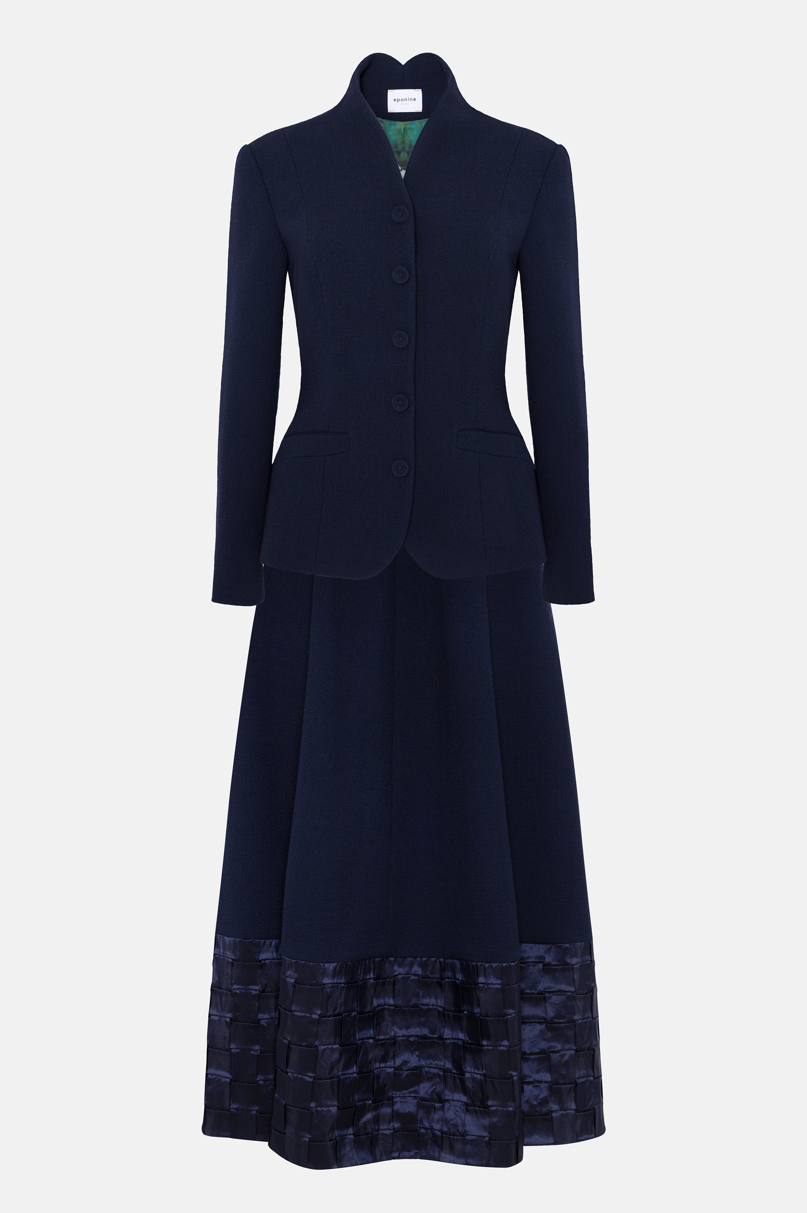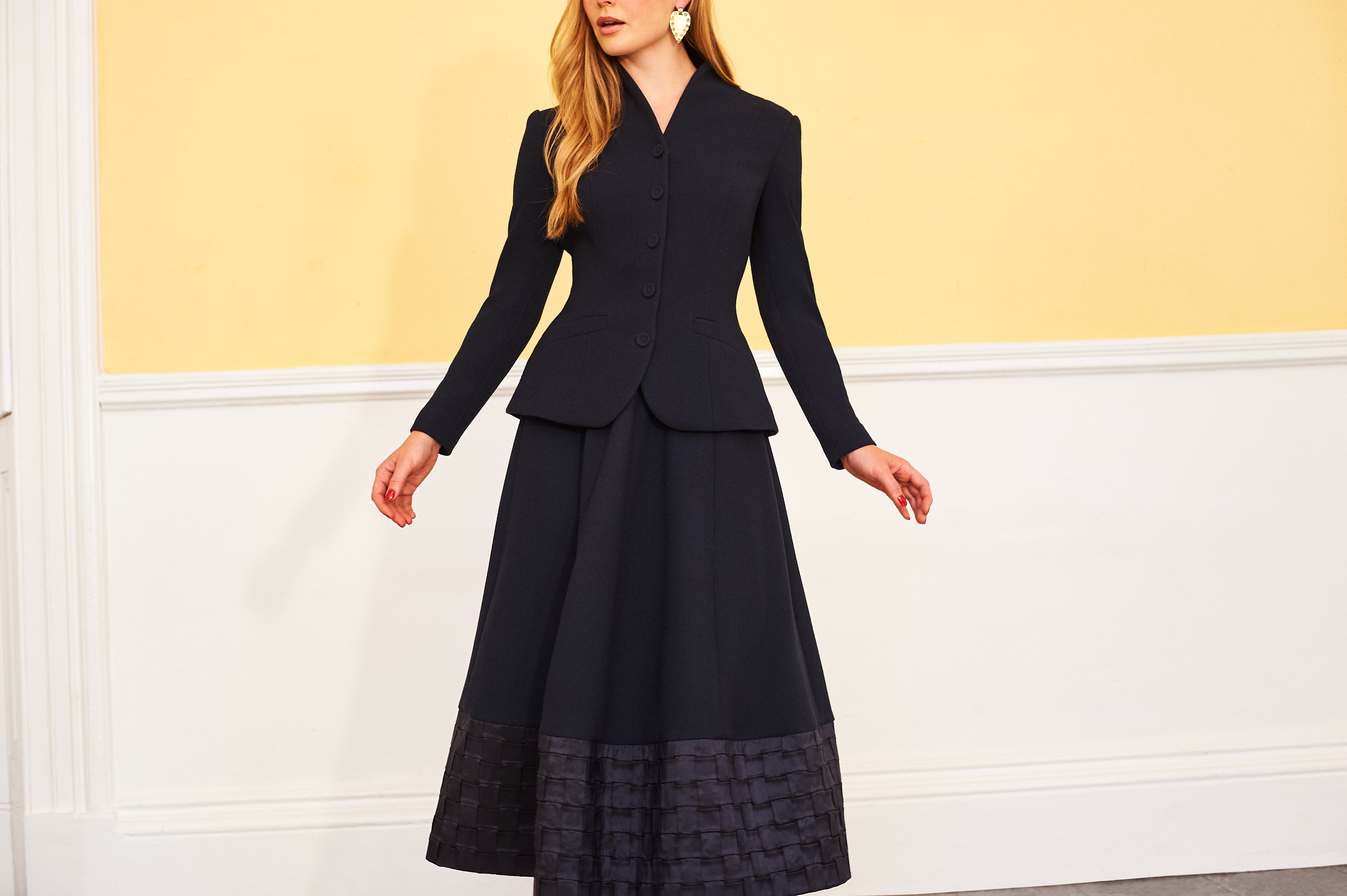 The Fairywren skirt – where timeless glamour meets playful textural detail. A box pleated silhouette falls into a woven silk satin trim, creating a gloriously dramatic swing. Design to pair perfectly with the Blue Jay jacket.